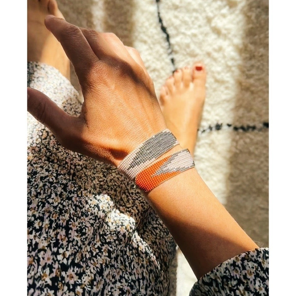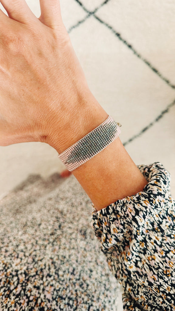 Handwoven bracelet made with tiny glass Japanese beads. These are high-quality beads, very soft and regular. The result is a light and smooth bracelet, really comfortable to wear.