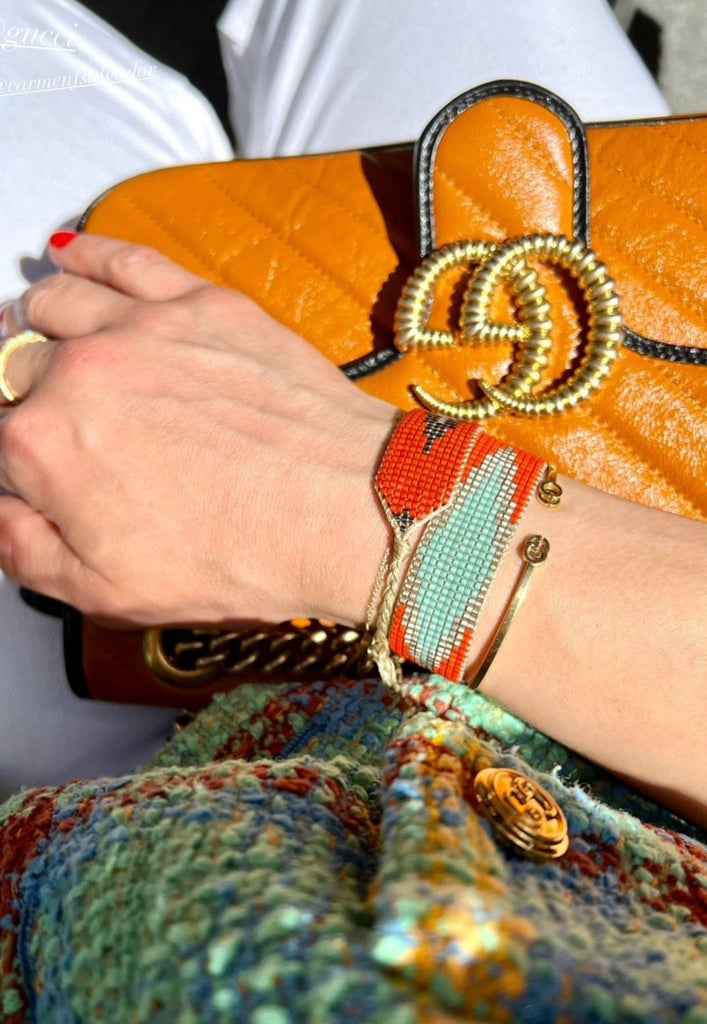 Handwoven bracelet made with tiny glass Japanese beads. These are high-quality beads, very soft and regular. The result is a light and smooth bracelet, really comfortable to wear.